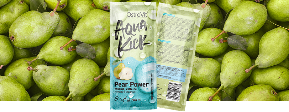 OstroVit Aqua Kick Pear Power is a high quality dietary supplement which is a source of two valuable ingredients - caffeine and taurine. It is a preparation with a delicious pear flavour, available in the form of sachets. It is a product created for athletes and people who want to stimulate the body.